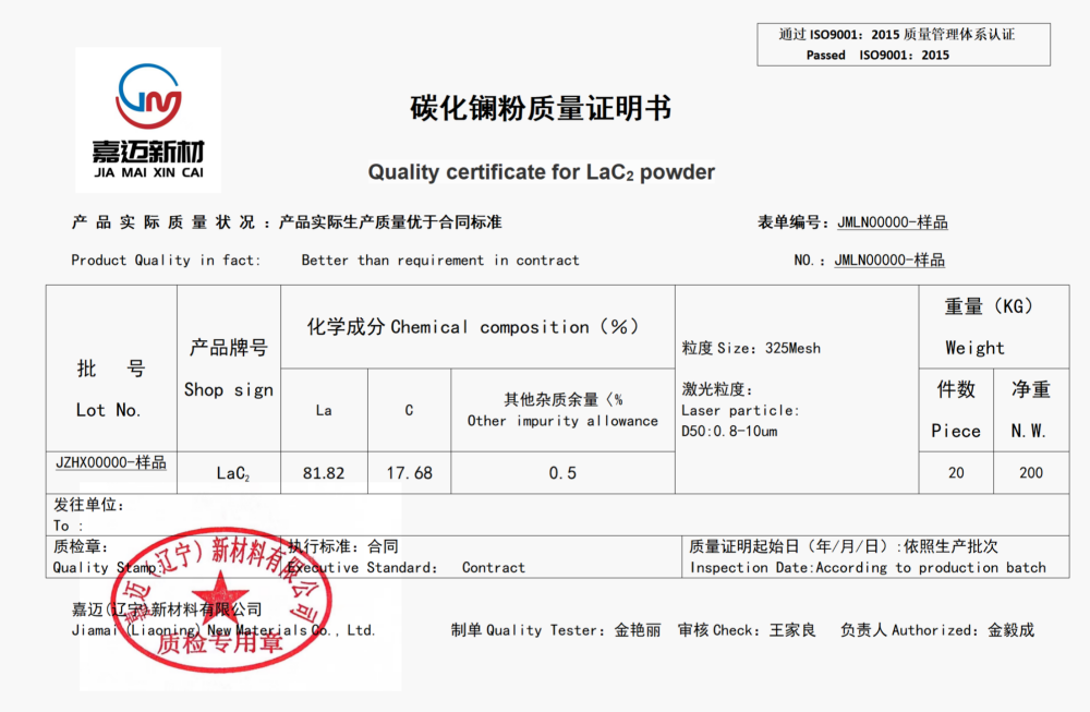 产品名称:碳化镧(LaC2)